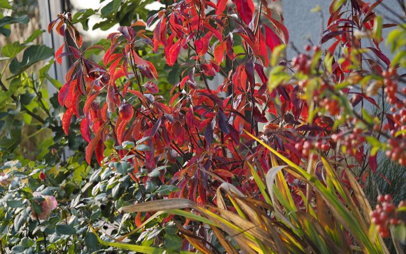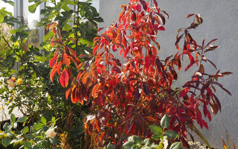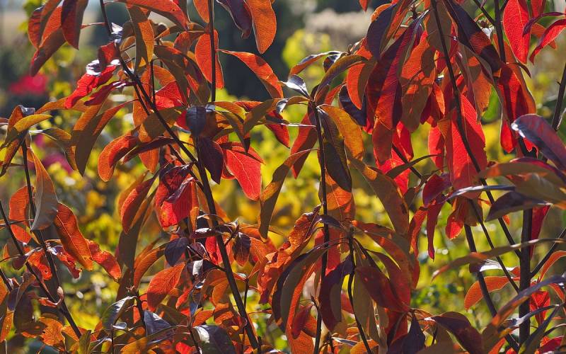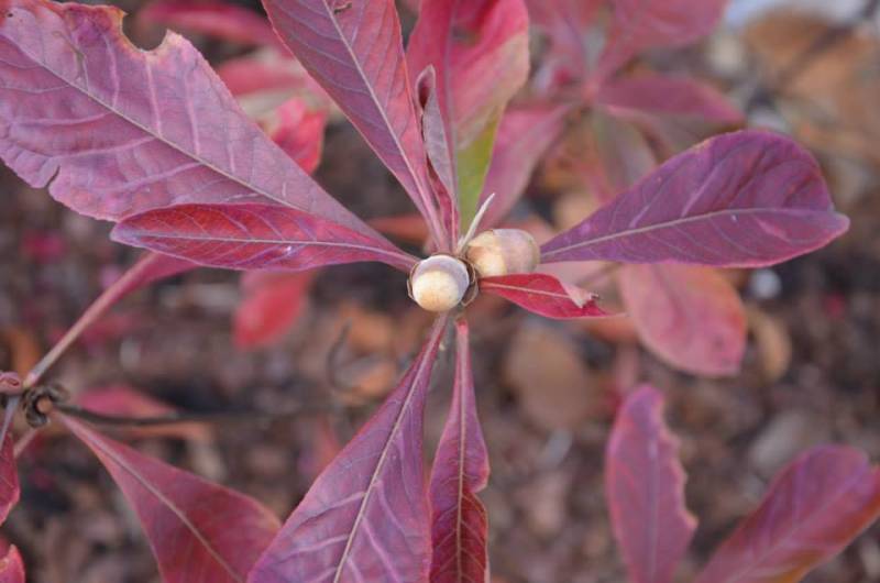 Ulistnienie: liście dosyć duże (10-20cm), lancetowate, błyszczące, jesienią pięknie przebarwiają się na pomarańczowo- czerwono-purpurowe kolory.