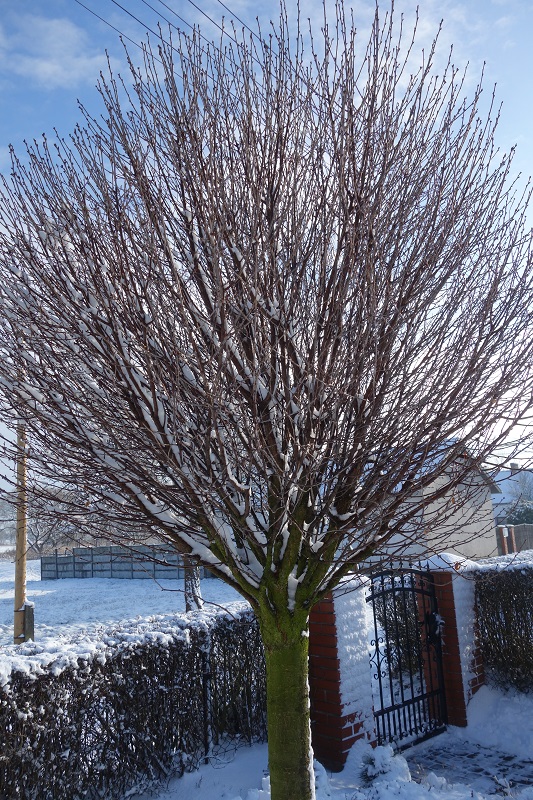 Małe drzewo o regularnej, kulistej bardzo gęstej koronie. O wysokości decyduje miejsce szczepienia.