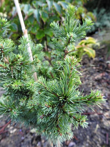 Igły miękkie, niebieskozielone, o długości 2,5 cm, pod spodem naznaczone dwoma szarymi paskami.