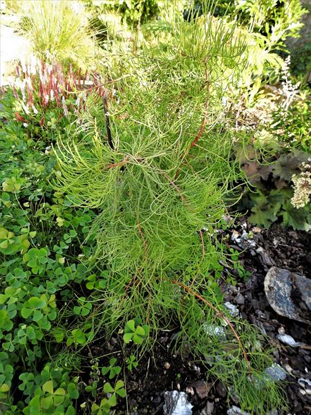 Igły: nitkowate, szmaragdowo zielone, jesienią przebarwiają się na rdzawo pomarańczowo.