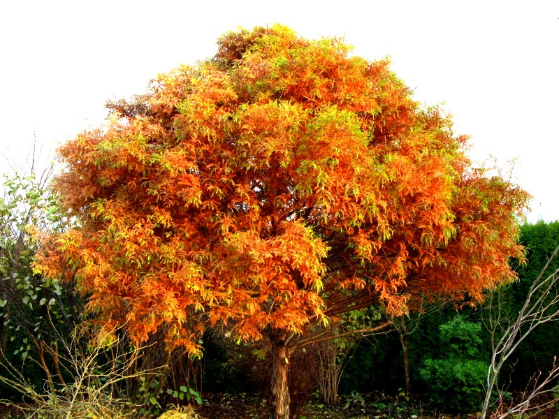 Mój cypryśnik jeszcze zielony, jedynie pojedyncze gałązki zaczynają łapać jesienny kolor.
