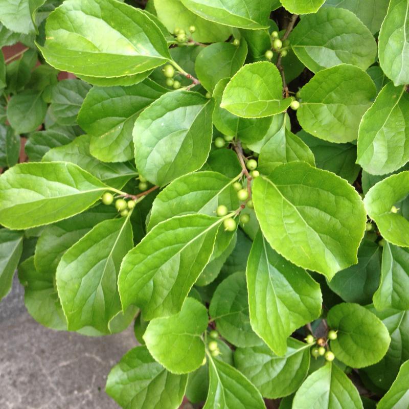 Pochodzi z Japonii, Chin i Korei. Bardzo bujnie i szybko rośnie. Pędy są pokryte licznymi, drobnymi pąkami z ostrymi, kłującymi łuskami (wyczuwalnymi zwłaszcza na tych późniejszych przyrostach). Liście są zielone okrągławe lub eliptyczne z karbowano-piłkowatymi brzegami. Kwiaty zebrane są najczęściej w kątach liści, owoce drobne, kuliste, w kolorze pomarańczowym, zdobią krzew całą zimę.