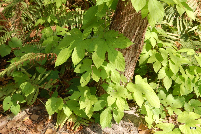 Liście duże, potrójnie, głęboko klapowane, szorstkie, ząbkowane, żółte.