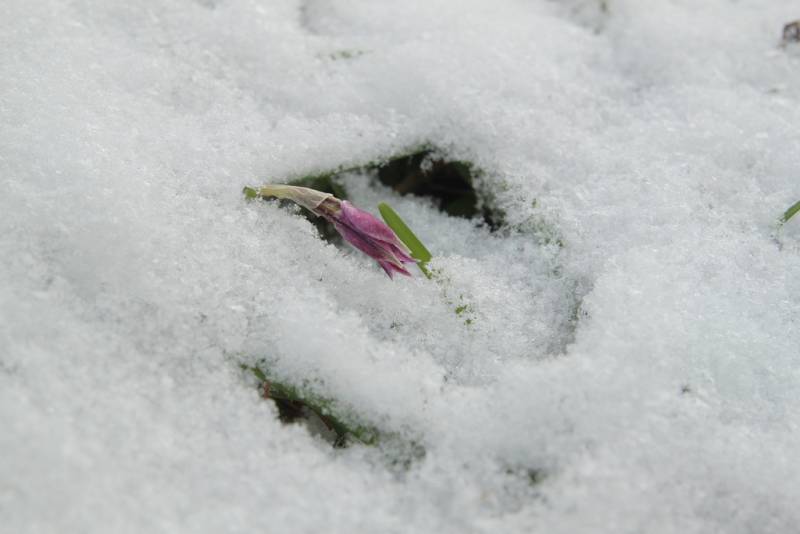 Tej zimy dość nietypowo jeden z Ifejonów zawiązał pączek w styczniu. Zdjęcie w śniegu zrobiłem 03.01.2026, ale mimo upłynięcia dwóch tygodni od tego czasu, pączek wciąż nie rozwinął się. Niskie styczniowe temperatury to nie są warunki, w których Ifejon rozwija kwiaty...