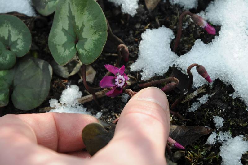 Cyclamen coum wszystko zniesie, tylko nie glinę i mokrą ziemię.