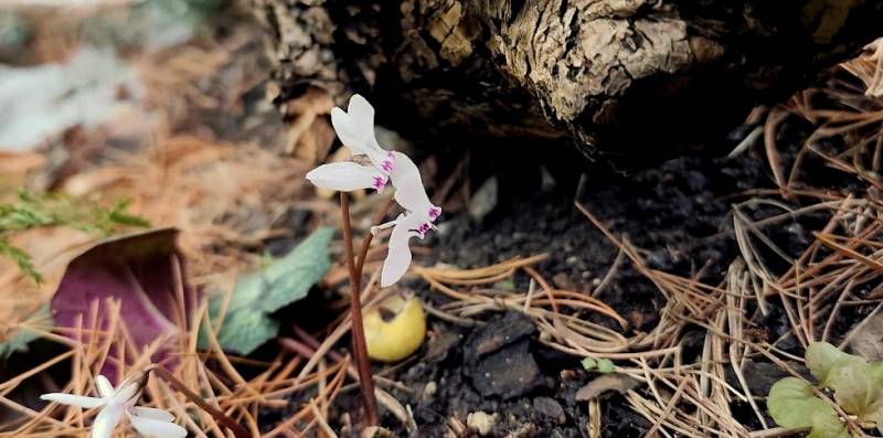 W ubiegłym roku zdecydowałem się spróbować przygody z Cyklamenami w ogrodzie. Zamówiłem jedną odmianę z grupy Hederifolium. Spodziewałem się, że w przesyłce dostanę bulwy do posadzenia, natomiast przysłano mi sadzonki w miniaturowych doniczkach. Dwie z nich kilka tygodni po posadzeniu nawet rozwinęły kwiaty. Mam nadzieję, że utrzymają się w naszym ogrodzie. Zdjęcia z 01 i 03.10.2025: