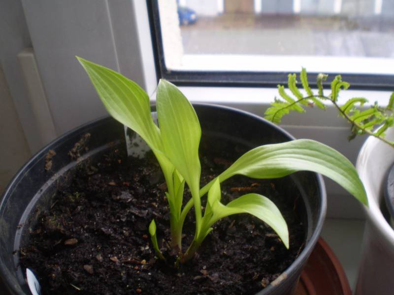 Okres zimowo przedwiosenny jest dla mnie bardzo depresyjny.Na działkach nic się nie dzieje i jest ponuro,na pierwsze kły hostowe jeszcze długo trzeba czekać,więc ja już od kilku lat uprzyjemniam sobie ten czas obserwacją host w domu.W styczniu przynoszę z działki do domu kilka(2-4) doniczek z zamrożonymi hostami.Po 2-3 dniach odmarzają na parapetach,podlewam je i zaczyna się przyjemność.Wierzcie mi,że to jest najlepsze lekarstwo na ten trudny okres do kwietnia.Hosty,jak tylko poczują ciepełko ruszają w drogę ku górze a dla mnie to niesamowita radość obserwować jak szybko zbierają się do życia
