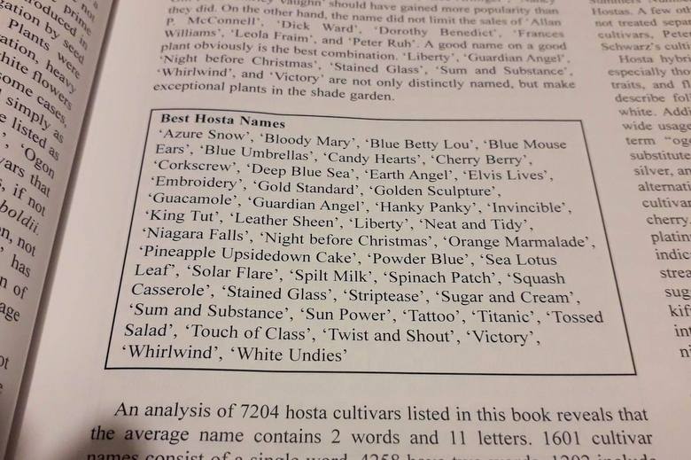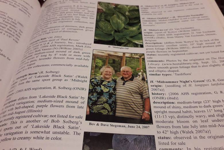 Później, mamy to, co najbardziej lubimy - fotki i opisy ponad 7 tysięcy gatunków i odmian naszych ukochanych roślin. Co wazne, autor przedstawiając serie, czy poszczególne hosty, dodaje słowko o twórcach i ich zdjęcia. W ten sposób pozanjemy małżeństwo Skaggsów (Empress Wu), Lydellów (Arch Duke, Lunar Orbit), czy Olge Petryszyn (Niagara Falls, Hoosier Dome, Key West)