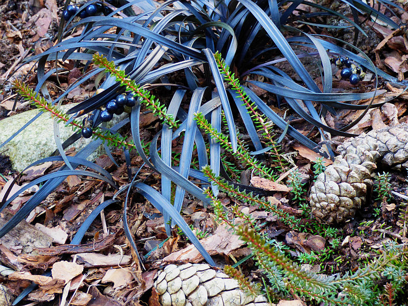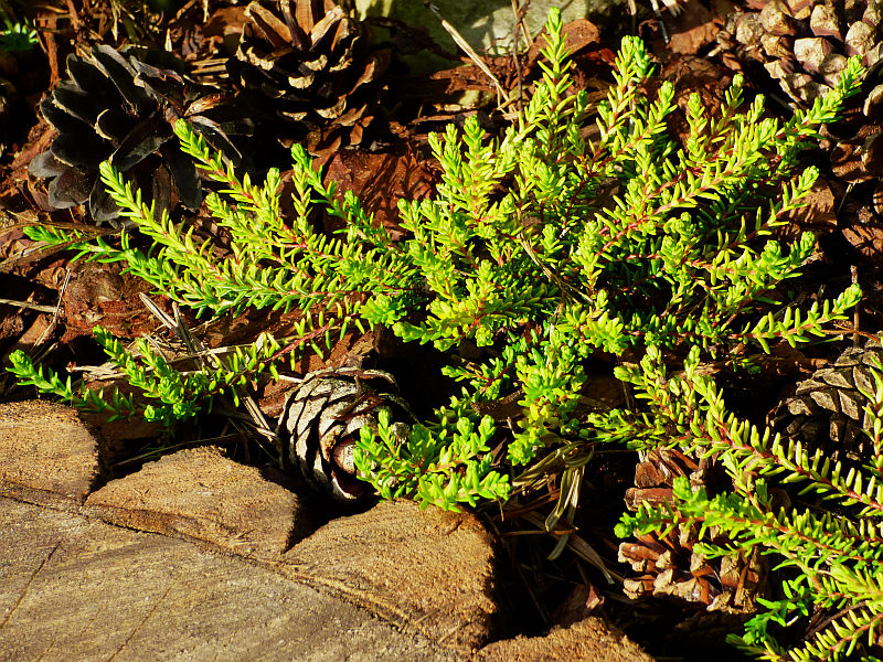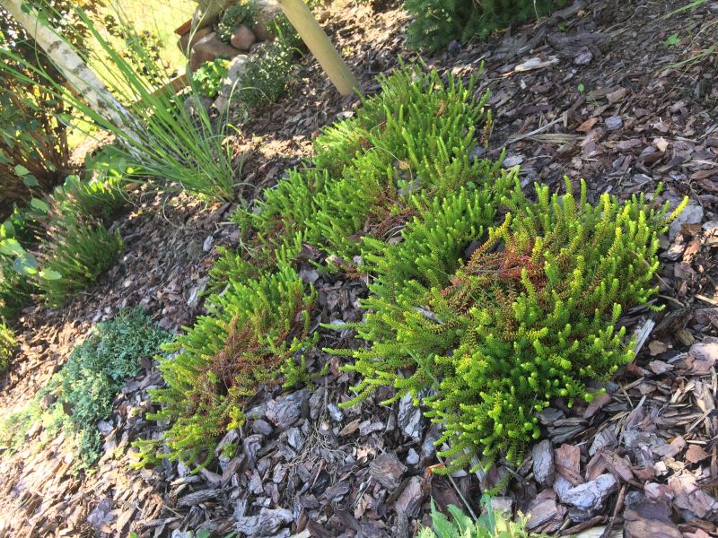 'Bernstein' o liściach latem żółto zielonych, a jesienią i zimą brązowo żółtych