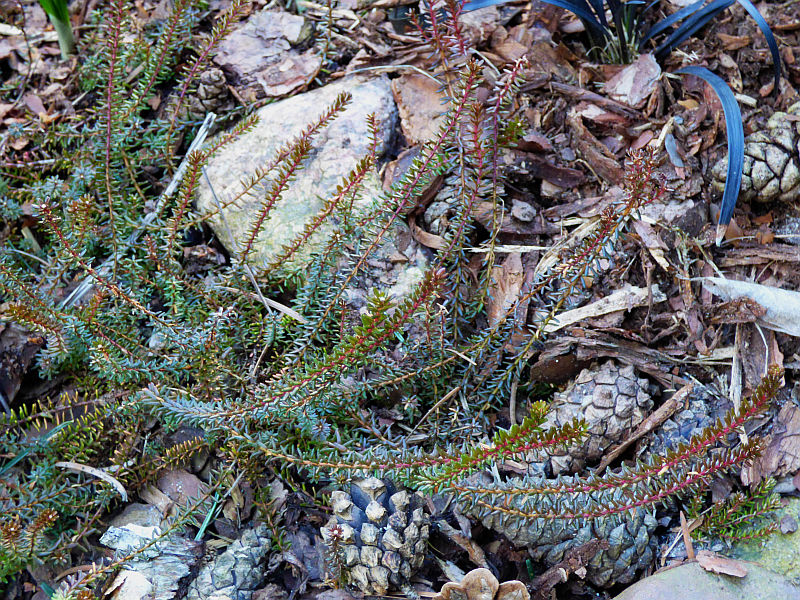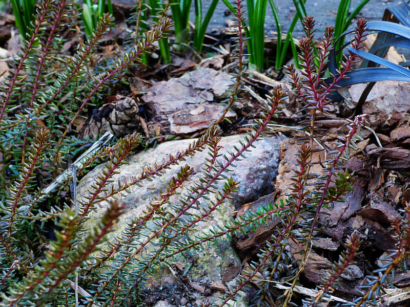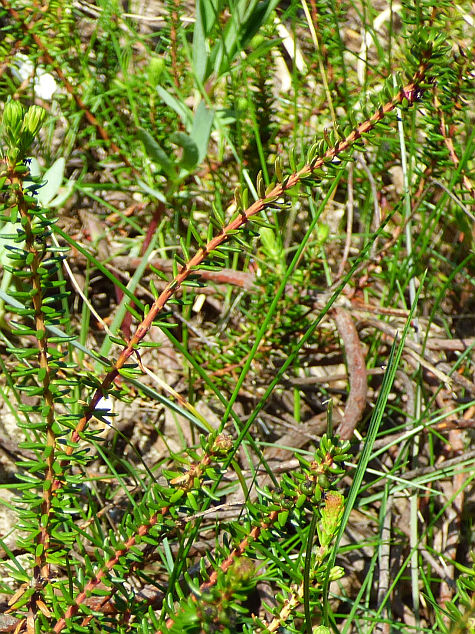 Pędy: młode wznoszące się, czerwonawe, nagie lub rzadko gruczołowato owłosione... starsze pokładające się, o łuszczącej się korze, czerwonobrunatne