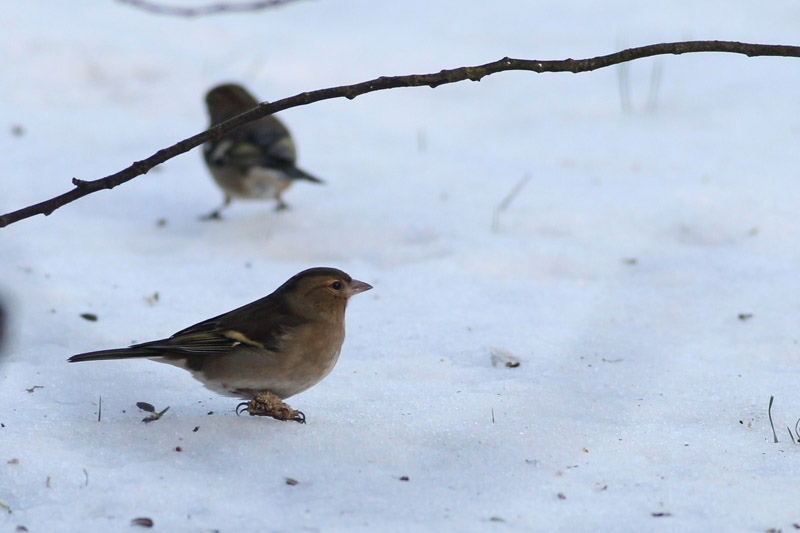 Zięba samica - ma jakąś narośl na nodze. Pewnie zmiany nowotworowe, albo pasożyty. Radzi sobie, nie odbiega wigorem od innych.