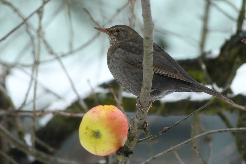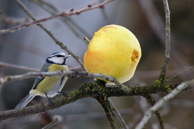 W ogrodzie zostawmy trochę winogron i innych owoców. U mnie chętnie żerują też na tujach (czyże, sikory), cisach (dzwońce, grubodzioby). Dobrze by w ogrodzie były słoneczniki, krzewy i drzewa wydające owoce smaczne dla ptaków: ligustr, jarzębina, dereń biały, kalina itp.