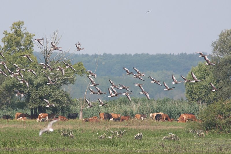 Kolejną ciekawostka jest to, ze na gęgawy można w Polsce polować. Właśnie zimą, kiedy najchętniej jeździmy na ptaki, często słychać w okolicach odgłosy wystrzałów. Po jednej stronie wału przeciwpowodziowego jest Park Narodowy "Ujście Warty", a po drugiej już nie. Więc myśliwi strzelają z wału w stronę nie-parku