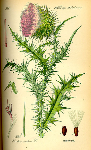 Oset jest rośliną należącą do rodziny astrowate. Rośnie dziko w prawie całej Europie. Jego kwiaty są koloru jasnofioletowego i tworzą duże, kuliste i zwisłe koszyczki. Kwitnie od czerwca do września Jest wskaźnikiem dla gleb o wysokiej zawartości wapnia