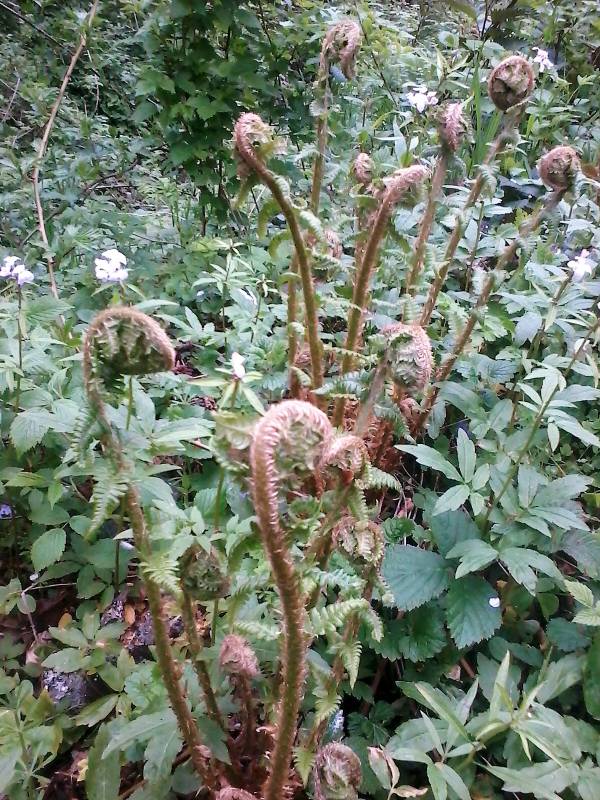 U nas dzikich roślin , jest bardzo dużo . Ale chyba w każdym lesie można spotkać paprocie , chyba pióropusznik strusi (w paprociach jestem słaba ) . Do mojego ogrodu przyszła sama , bo jest w kilku miejscach np. na skarpie pod jałowcami . Drugą roślinkę przyniosłam w tamtym roku ze względu na ładne liście , w tym roku nawet zakwitła i dowiedziałam się ,że jest to żywokost sercowaty