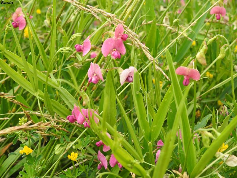 Roślina zielna, trwała, wznosząca lub pokładająca. Wysokość: 100-200 cm. Kwiaty: motylkowe, w pąku kremowo żółte, później przebarwiają się na różowo z ciemniejszymi prążkami VI - VIII Owoc: brązowy strąk