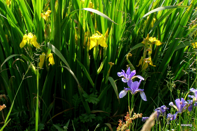 Na jednej polanie rosną obok siebie; Kosaciec żółty i syberyjski.