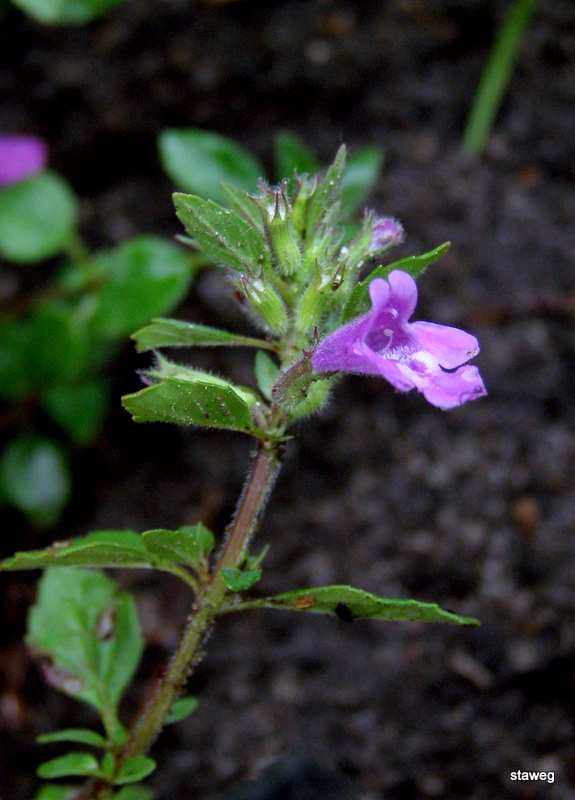 Jasnotowatych (Lamiaceae), czasem jednorocznej, ale najczęściej trzyletniej. Łodygi ma leżące, podnoszące się, pokryte drobnymi, podługowatymi, drobno ząbkowanymi liśćmi.