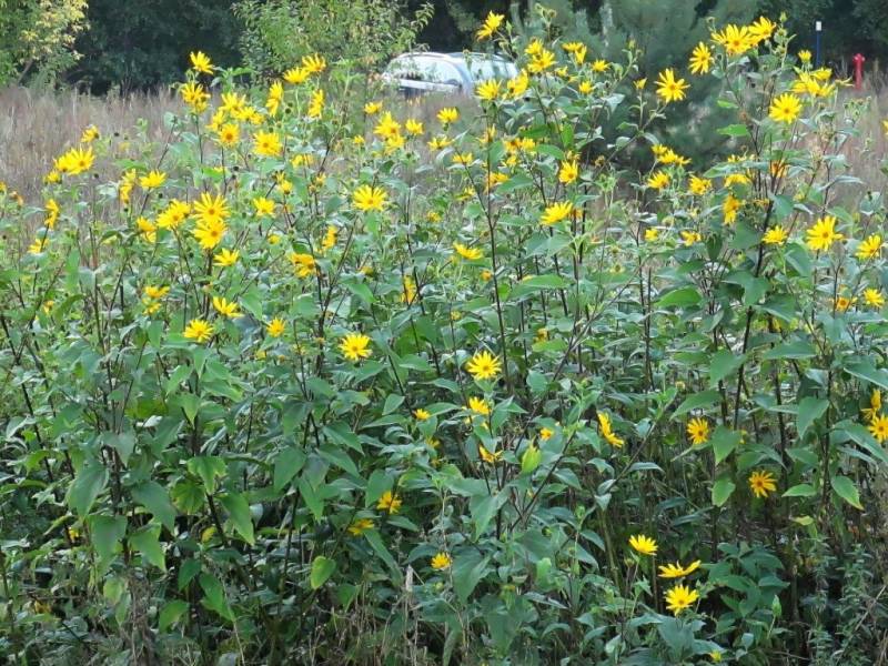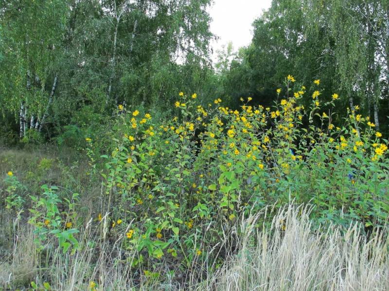 Pisałem na początku, że będę miał zamiar wykopać i posadzić to owe cudeńko gdzieś z dala od zabudowań . Jednakże dwa dni temu poszedłem na spacer, by zobaczyć jak wyglądają kwestie grzybowe i ku mojemu zdziwieniu spotkałem kilka miejscówek z topinamburem. Jedyne co mnie ciekawi to to...jak się tam te rośliny znalazły?? Chyba wykopię kilka i skosztuję
