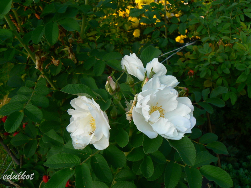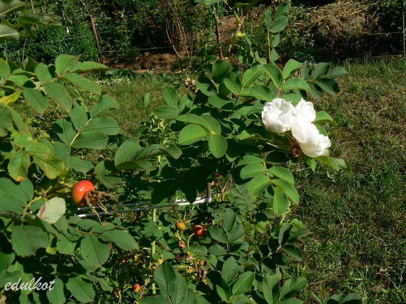 Z początku rosła słabo, ale chyba ukorzeniła się i teraz na własnych korzeniach rozrosła się bardzo. Kwitnie cały sezon, a od lipca ma jednocześnie owoce i kwiaty.