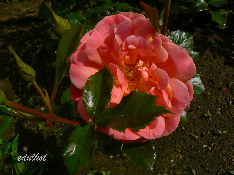Kwiaty:intensywnie łososiowo-różowe, w miarę rozwijania robią się różowe (Ø 7- 8cm), złożone z około 15 płatków z jaśniejszą obwódką bardzo ładnie uformowanych,