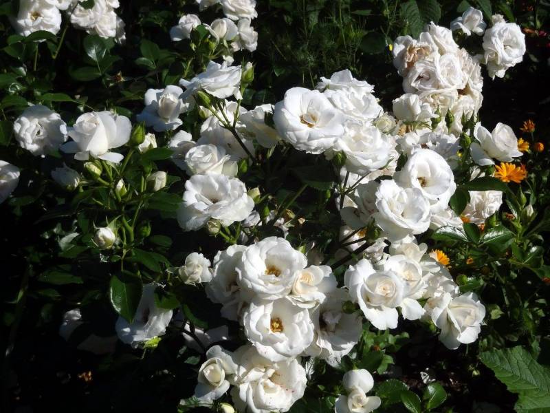 Angela - kwitnie bardzo obficie, doskonale powtarza, odporna na choroby. Nadzwyczaj szybko buduje duży krzew (już w I-szym roku po posadzeniu osiągnęła ok. 130 cm.). Nie mam dobrego zdjęcia tej róży, ale jest piękna: