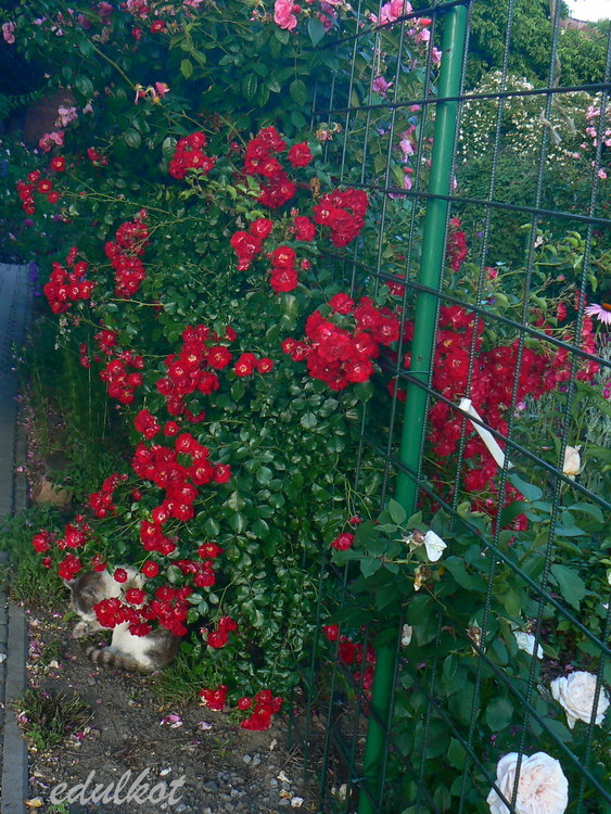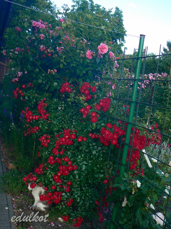 Posadzona przy kratce bardzo szybko pokazała że jest pełna wigoru i potrzebuje dużo więcej miejsca niż deklaruje hodowca. Ponieważ rosła i rośnie na skraju kratki która w końcu została w zeszłym sezonie przedłużona, postanowiłam tylko ją lekko przesunąć i w efekcie obróciłam ją o 180st. podcinając tylko część korzeni. Zniosła to dobrze i dość szybko odbudowała długie pędy.
