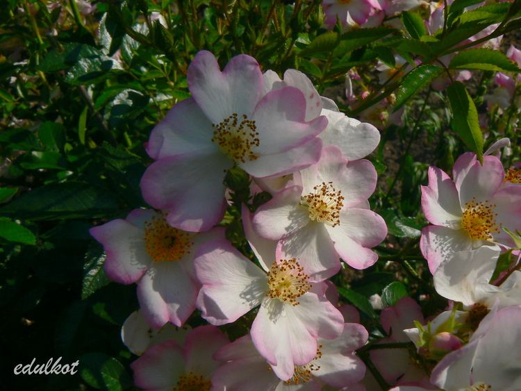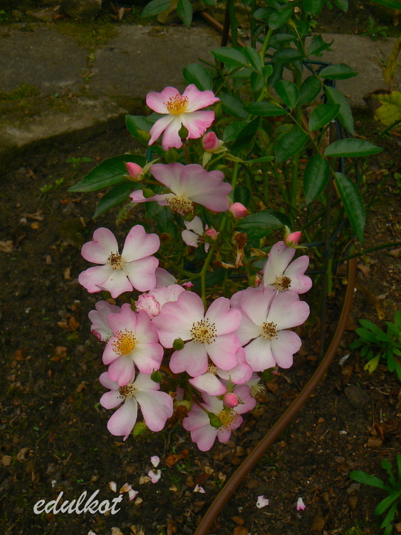 Hodowca: Louis Lens , 1988, Typ: krzew, może być jako okrywowa, Kwiaty: małe, pojedyncze, jasnoróżowe z białym środkiem, żółte pręciki, kwitnie dużymi bukietami cały sezon, Zapach: silny, Liście: ciemnozielone, pędy cienkie, wyginają się, Wielkość: wys. 0,5 m, szer. 0,8 m, Mrozoodporność: 6b,