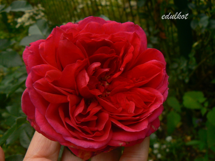 Hodowca: Christian Evers, 2009, Typ: krzaczasta Kwiaty: duże, bardzo pełne w staromodnej formie, ciemno czerwone z fioletowymi cieniowaniami, powtarza kwitnienie. Zapach: mocny, starej róży. Wielkość: wys. 1-1,5 m, szer. 0,5-0,6 m. Mrozoodporność: ?, bardzo odporna na choroby.