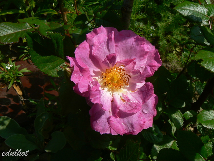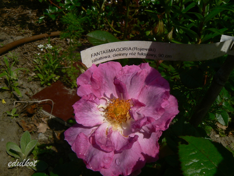 Hodowca: Łukasz Rojewski, Typ: rabatowa Kwiaty: ciemno różowe fuksjowe, półpełne, 10 cm, płatki na brzegach pofałdowane a w środku jaśniejsze, kwitnie gronami cały sezon Zapach silny Wielkość: wys. 0,9 m, szer. 0,9 m, Mrozoodporność: bardzo wysoka, zdrowotność odziedziczyła po róży 'Knock Out'.
