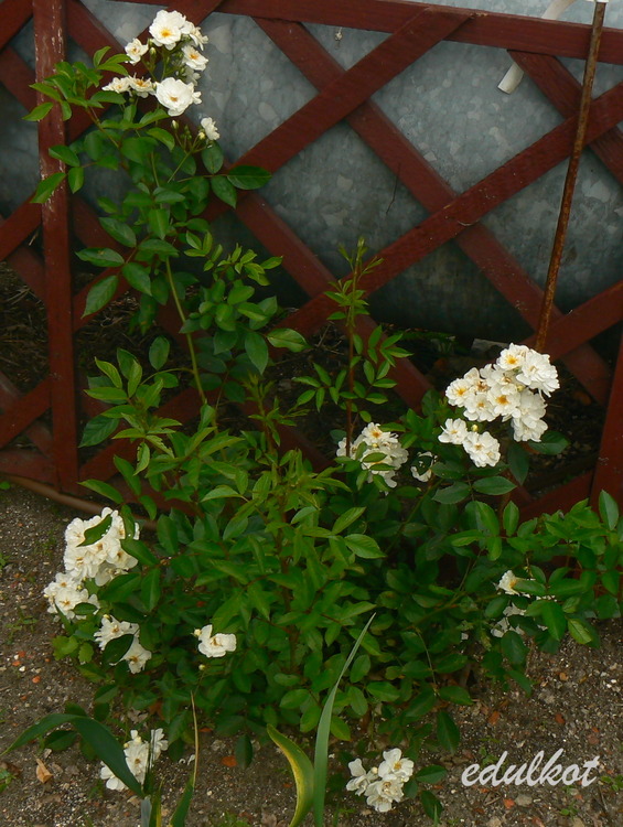 Moja dostała bardzo kiepską miejscówkę bo właściwie rośnie na gruzowisku gdzie pomiędzy luźny gruz wsypałam dobrej ziemi i kompostu, przypuszczalnie trzeba będzie dosypywać z czasem bo ziemia będzie osiadać pomiędzy gruzowiska. Ma swoją kaskadą pędów zasłonić zbiornik na deszczówkę.