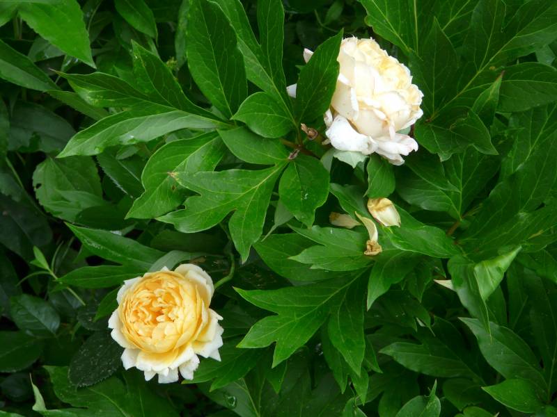 która kwitnie dużymi kwiatami w kolorze kremowo-morelowym