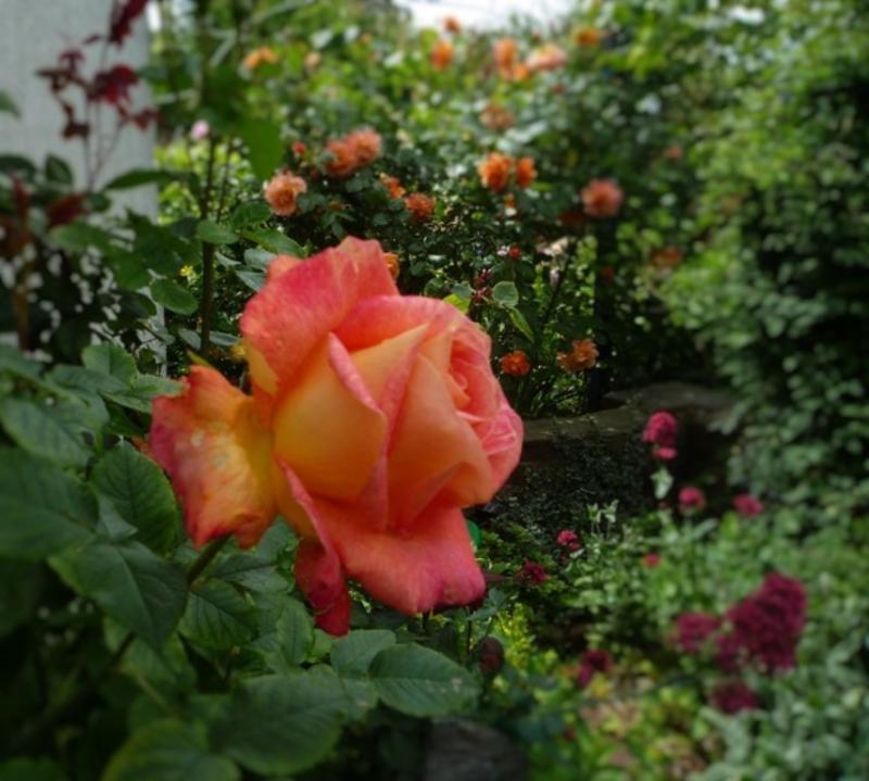 U mnie obok rośnie róża Lustige i czerwona stara róża NN