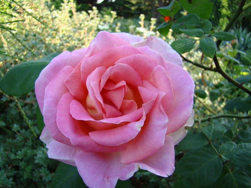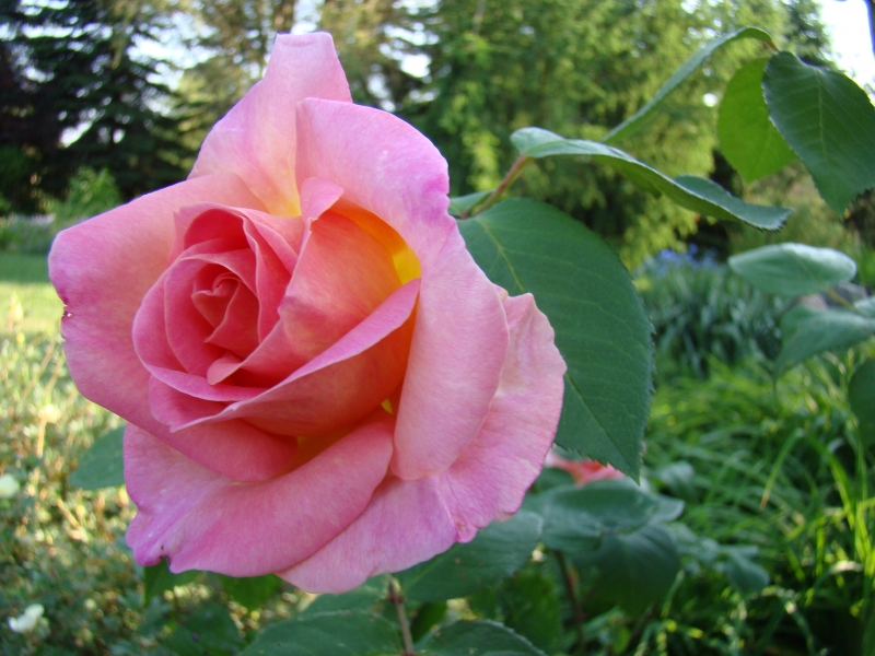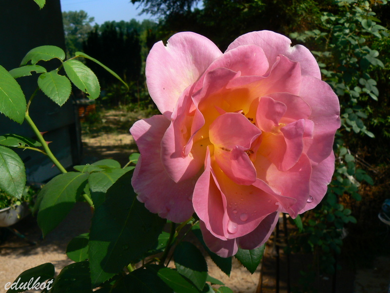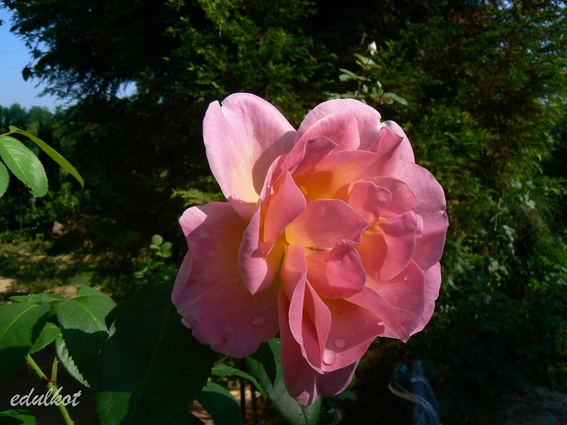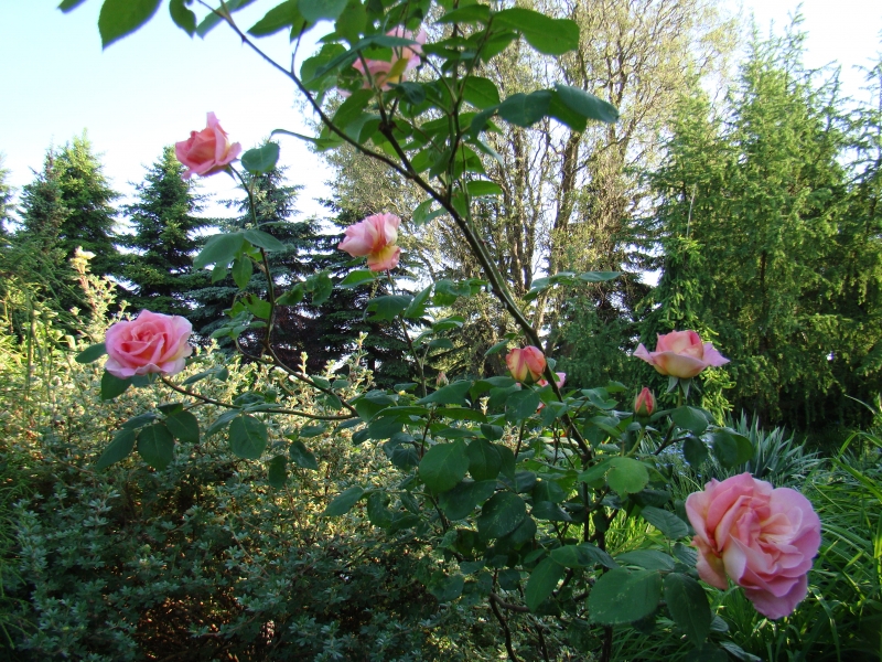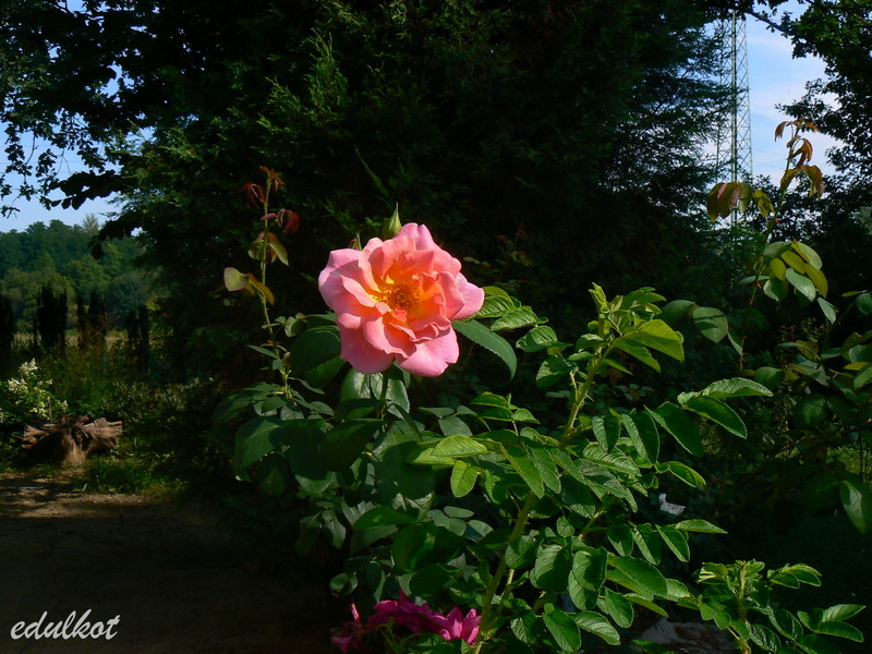 Jest to róża mająca manię wysokości, bo nawet przycięta do ziemi jak w tym roku, rośnie jak głupia i kwitnie dopiero jak osiągnie sporą wysokość. Trochę mnie to wkurza, wiosną już się z nią pożegnałam a ona zakwitła w lipcu na wysokości 1,5 m B)