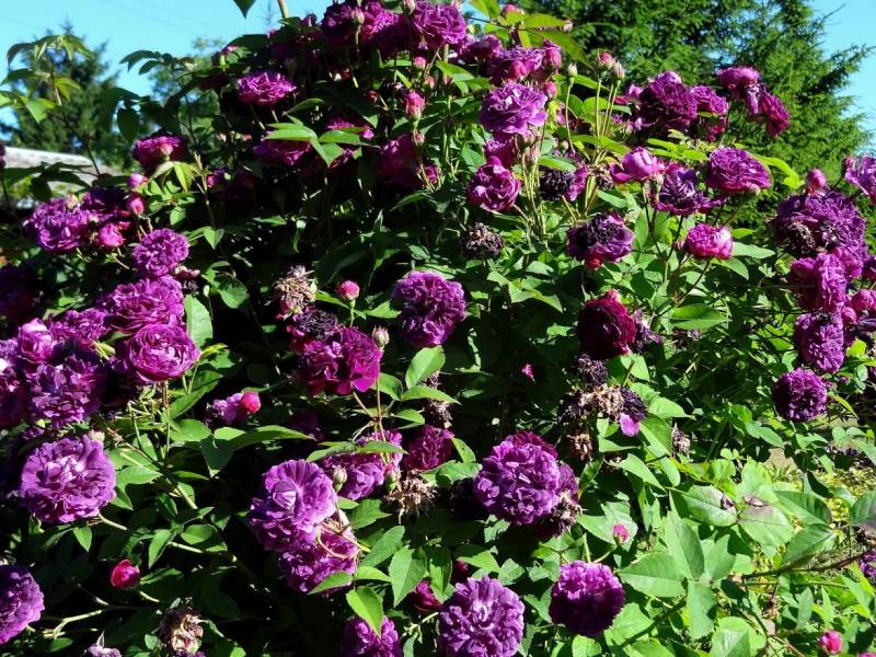 Krzew dorasta do 185 cm. Bardzo dobrze się krzewi. Podają,że podatny na czarną plamistość, ale u mnie wyjątkowo zdrowy!