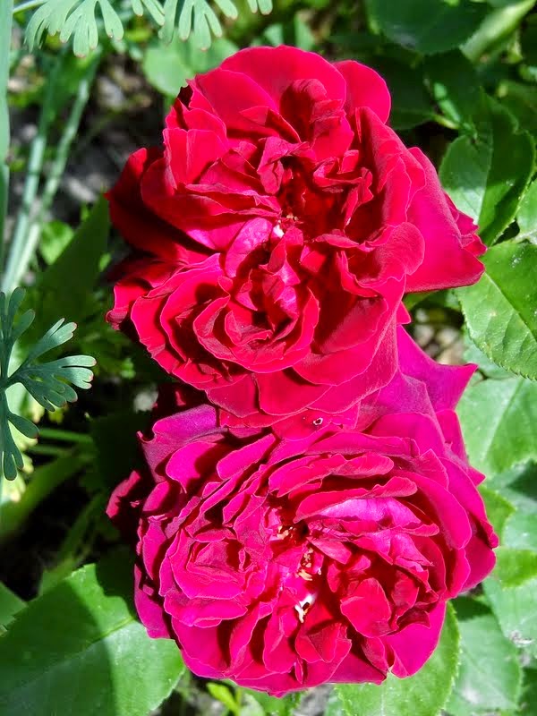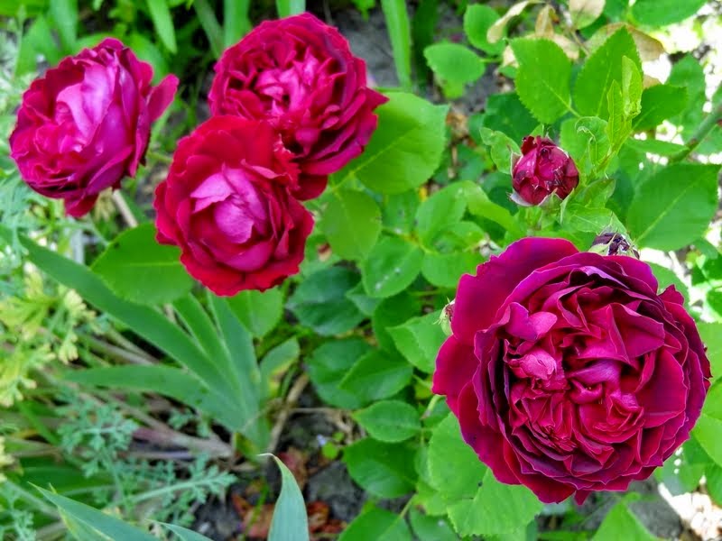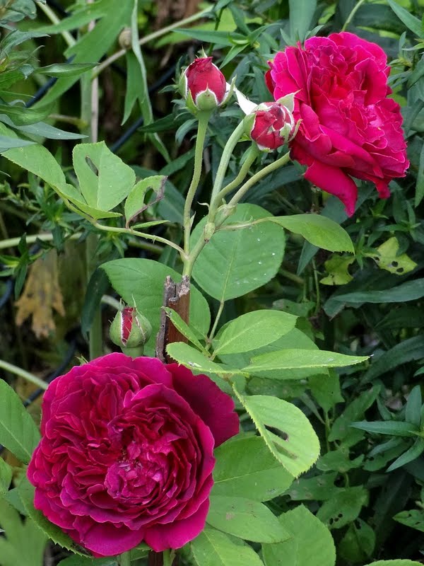 Kwiaty duże, bardzo pełne z początku czerwone potem w miarę rozwijania fioletowe. Pachnące. Odporne na deszcz.