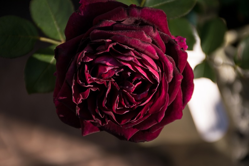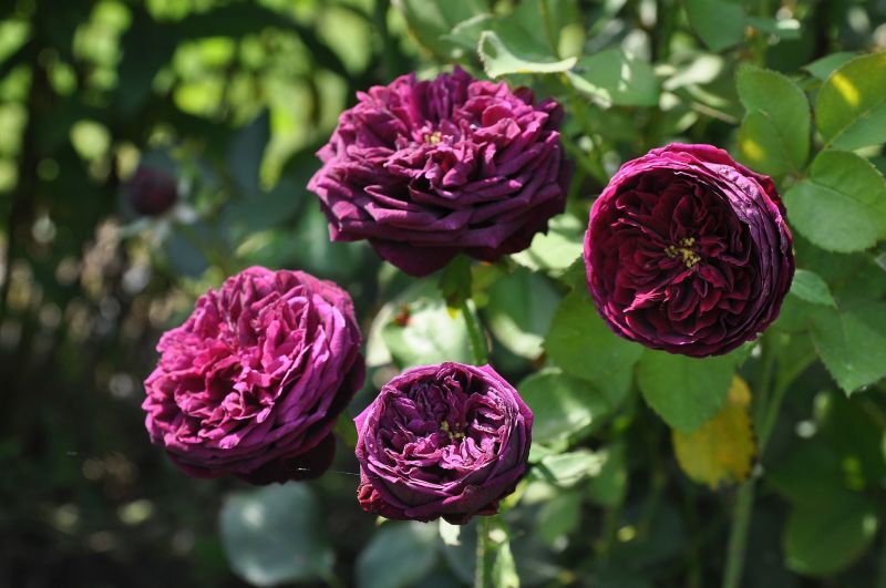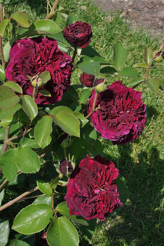 Kwiat średniej wielkości, pełny, rozetowy w kolorze bardzo mocnej purpury, w pąku prawie czarne. Pięknie i mocno pachnie. Wrażliwa na upały.