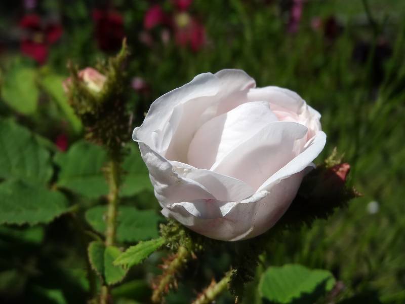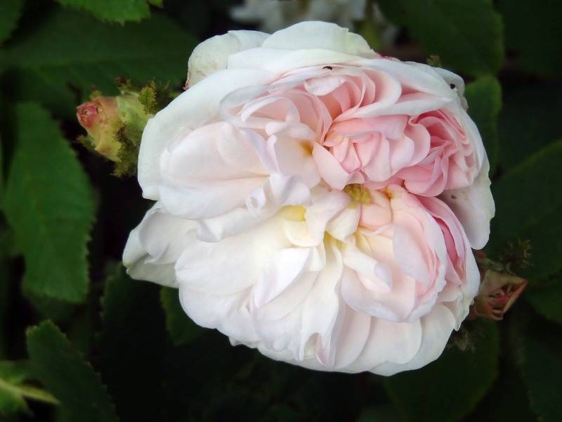 Kwiaty jasne z odcieniami różu. Pięknie pachnie.
