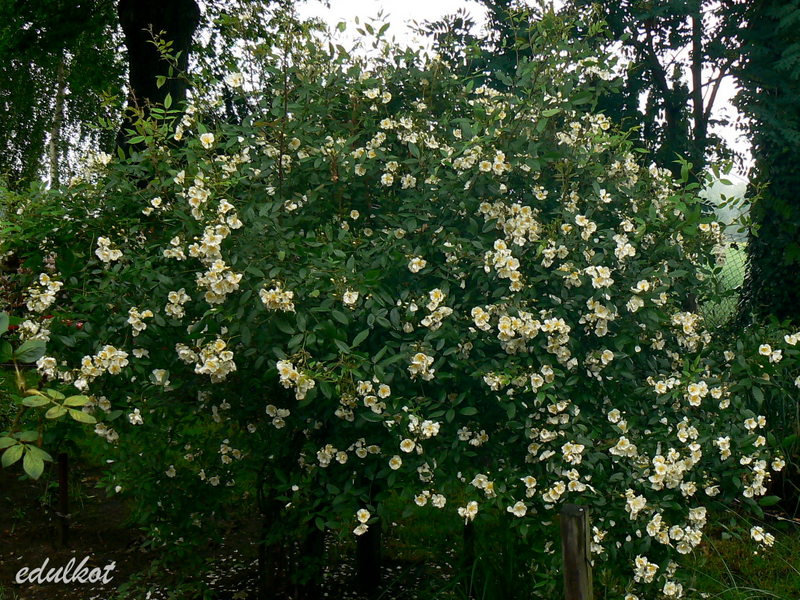W tym roku dodałam jej do towarzystwa powojnika włoskiego. Dalsze obserwacje potwierdzają to co już napisałam wcześniej. Całkowity brak zapachu przez całe lato. Pod koniec sierpnia gdy wilgotność powietrza znacznie wzrosła przez padające deszcze zapach niesamowity. Roznoszący się po całym ogrodzie. Każdy kto przechodzi nieopodal pyta się co tak pachnie i nie może uwierzyć że tak niepozorna różyczka może mieć taki piękny zapach.