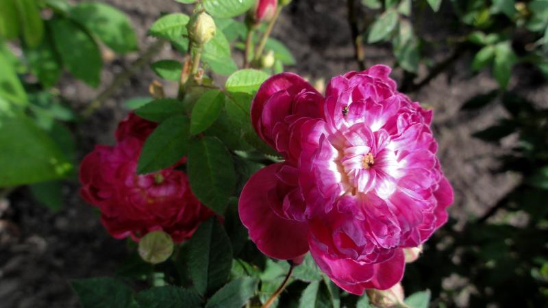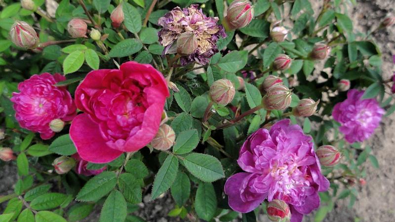 Ma piękne w kształcie purpurowo fioletowe kwiaty o mocnym, pięknym zapachu starych róż.
