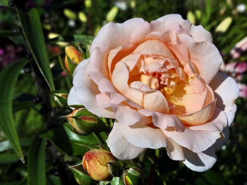 Kwiaty duże, zebrane po kilka na końcach pędów. Kwitnie od VI do mrozów. Zapach delikatny.