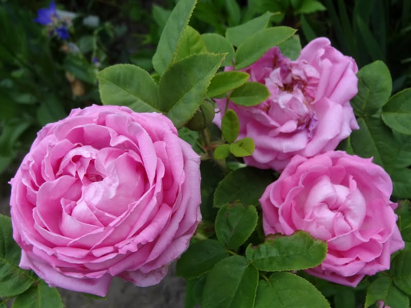 Kwiaty duże, różowe, bardzo pełne o pięknym kształcie. Mocno pachnie. Powtarza kwitnienie cały sezon.