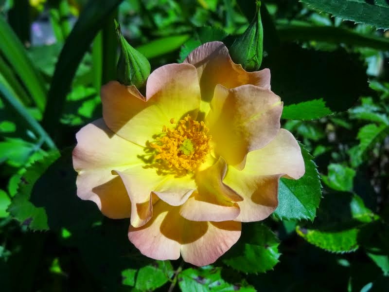 Kwiaty ok. 8 cm, pojedyncze żółto-pomarańczowe, z czasem bledną, z widocznymi złotymi pręcikami. Pachnie. Kwitnie cały sezon bezustannie.
