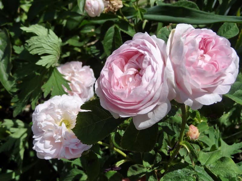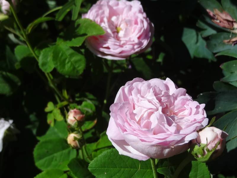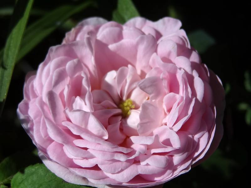 Kwiaty jasno różowe o średnicy ok. 7 cm. Bardzo pełne o budowie ćwierćrozetowej.