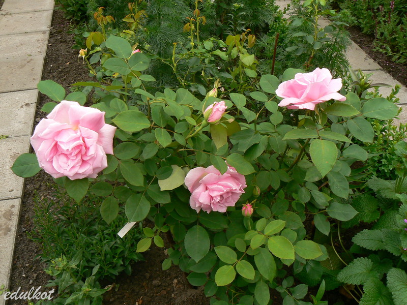Kwiaty: różowe, duże półpełne (17-25 płatki), kwitnie przeważnie pojedynczymi kwiatami cały sezon, pąki duże.