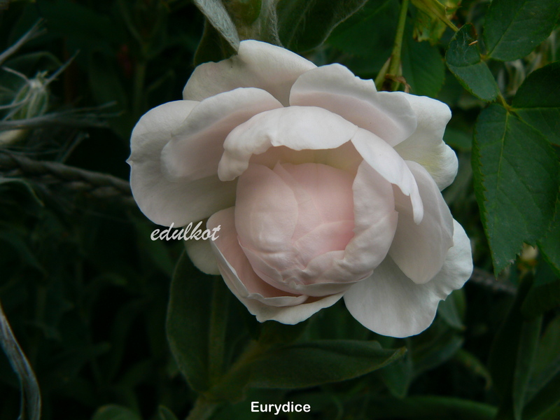 Wszystko byłoby pięknie tylko to co można kupić jako "Eurydice" - róża Geschwinda nią niestety nie jest. Według starych opisów oryginalna "Eurydice" miała kwiaty duże, podwójne, kuliste, potem filiżanki, karmin-różowe.