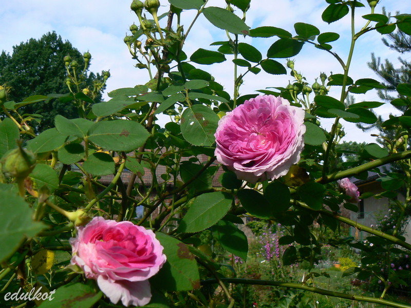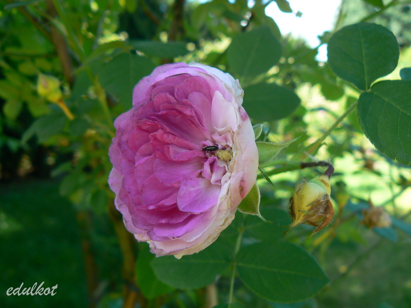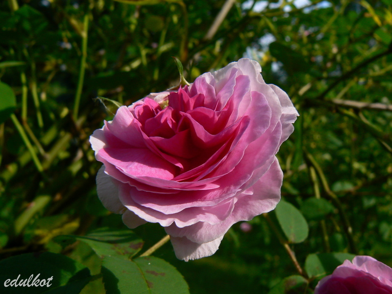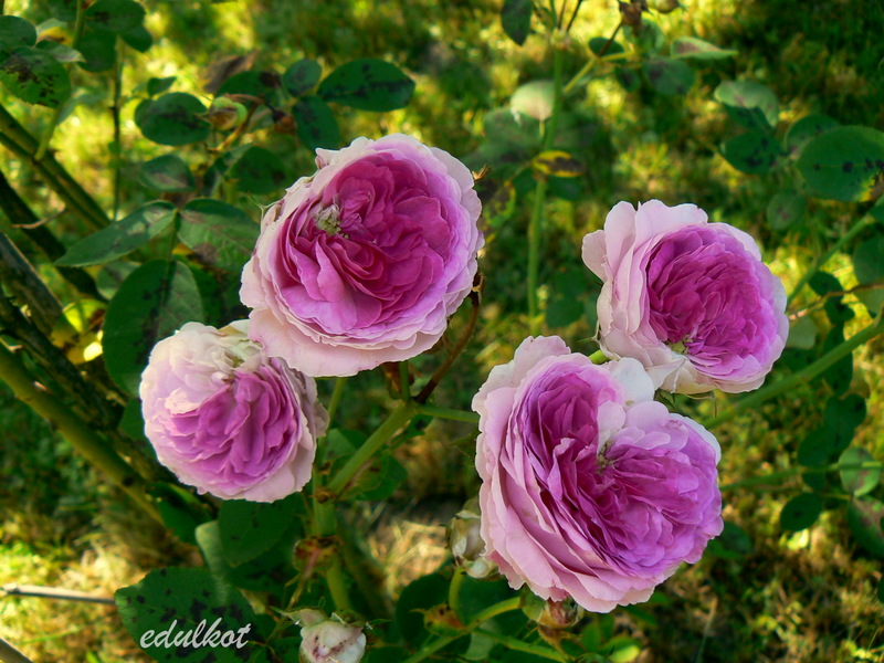Patrząc na jej kwiaty mam wrażenie, że to jest jej matka De La Grifferaie (takie są najnowsze wzmianki). Pierwsze doniesienia o tej róży wskazywały podobieństwo do Gruss an Tepliz i kwiatach szkarłatno-purpurowych.