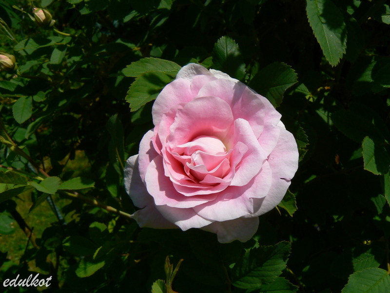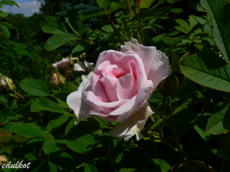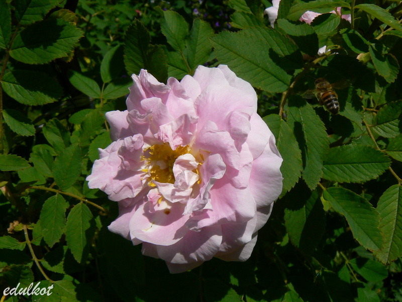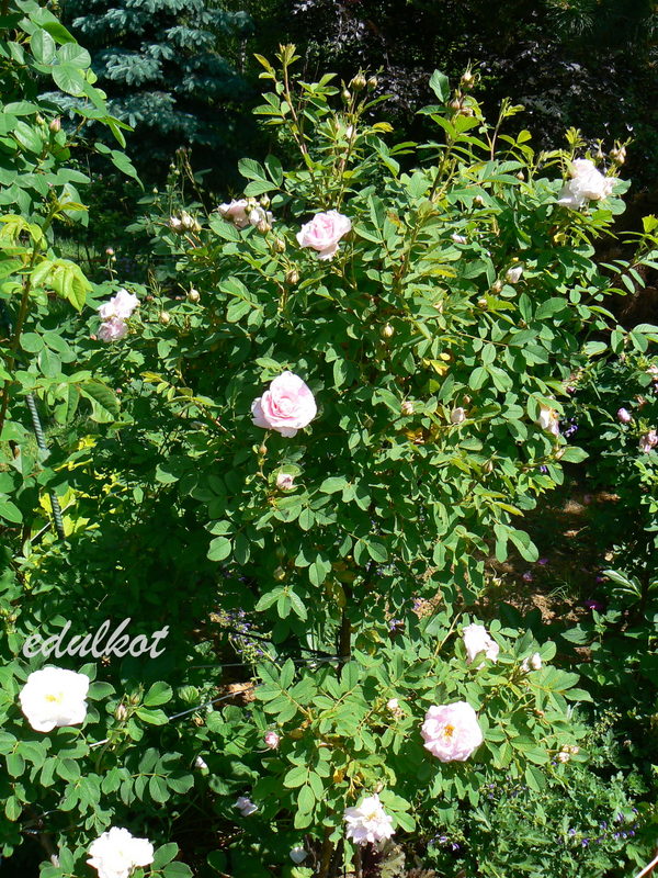 Kwiaty: jasno-różowe jaśniejące do białego w miarę rozkwitania, średnie ok. 5-6 cm, półpełne (26-40 płatków), kwitnie cały sezon aż do mrozów, w czasie deszczowej pogody pąki mumifikują się i trzeba obrywać te mumie,