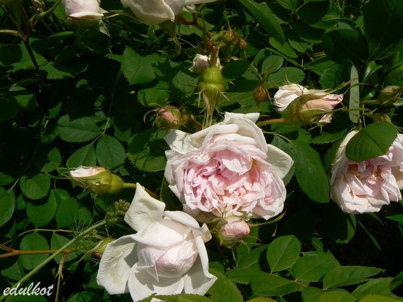 Róża Alba, Centifolia, Turbinata, Pochodzenie: Jean-Pierre Vibert 1819 (Francja) Kwiaty: jasno-różowe, z eleganckich pąków rozwijają się niezbyt eleganckie małe i średnie ok. 5cm, pełne (26-40 płatków), kwitnie raz, Zapach: silny, Wysokość 1,5 m Mrozoodporność: strefa 3b