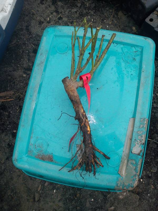A więc kupiliśmy róże z gołym korzeniem. Proszę się nie zdiwić, jeśli korzenie są bardzo przycięte. Tak się robi w szkółkach.